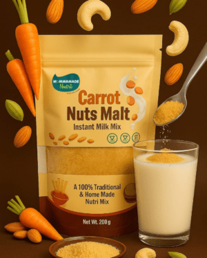 Carrot Nuts Malt is a natural milk mix for kids made with carrot and nuts to support immunity, brain development and overall growth.